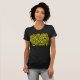 Uma camiseta com um design surreal abstrato, desenhado à mão, uma rede de formas que se conectam com formas semelhantes a fios que se parecem tanto naturais quanto com máquinas.
