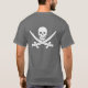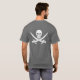 O símbolo alegre icónico da bandeira de pirata de Roger com as espadas cruzadas - sem redução na parte traseira e repetidas no "bolso dianteiro". No branco em toda a camisa escura você escolhe!