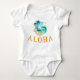 Teto de bebê bonito apresenta gráfico circular de cena tropical com texto "Aloha"