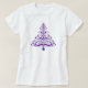 Esta camisa de Natal bonito apresenta uma imagem decorativa artística estilizada de uma árvore de Natal roxa e azul sobre um fundo branco brilhante. Elegante e festivo!