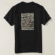 Glifos brancos rabiscados em fundo azul está na frente desta camiseta. A composição é ampliada a partir do desenho original menor. Os tons de terra sobre um fundo leve estão na parte de trás desta camiseta. É uma imitação de linhas horizontais de glifos, mas em vez de desenhados, eles foram criados com miçangas cerâmicas que fiz com impressões nas bordas. Eu enrolei as bordas a tinta e depois sobre o papel horizontalmente. Foram usados vários padrões nas miçangas que eu usava nas linhas impressão. Depois de digitalizar a linha carimbada, usei um filtro digital de photoshop para dividir a imagem em blocos móveis.
