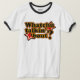 Que você Talkin" 't-shirt do ataque. Alaranjado, vermelho e amarelo, com ponto de interrogação grande.