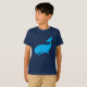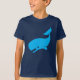 A camisa apresenta uma baleia azul feliz fora por um bom tempo.