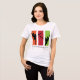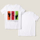 Uma camiseta com um Mango Moon Studio ilustração original de bailarina silhuetas dançantes em retângulos coloridos de vermelho, verde e laranja e a citação de Martha Graham - Dança é a linguagem oculta da alma.
