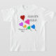 A Criança de sexta esboçou-se em branco e preto. Com o texto, feliz por ser eu. Balões coloridos em forma de coração soprando em vermelho, rosa, azul, verde, ouro amarelo, roxo com a aparência de aspersores. Bons dias de camisa da semana para qualquer nascer numa segunda-feira. Design de Arte Original por TamiraZDesign.