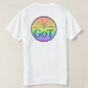 Camiseta branca elementar de literacia com totens de Casa e logótipo colorido de GOT