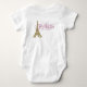 Camisas de bebê menina Paris com bela Torre Eiffel dourada e lindo texto Paris rosa. Você pode adicionar o texto de sua escolha no estilo e cor de sua escolha, escolha seu estilo, cor, tamanho e quantidade simplesmente escolhendo o botão personalizar para começar.
