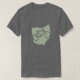 Bicycle Ohio é a mensagem dessa imagem gráfica com um ícone de bicicleta e um contorno do estado de Ohio, ambas silhuetas com bordas rasterizadas em um design verde sábio na sua escolha de cor, estilo e tamanho da camisa. Adicione texto personalizado se desejar para sua corrida de bicicleta, clube ou evento.