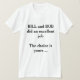 A parte dianteira do t-shirt "Bill e Bob, fez um trabalho excelente, a escolha é sua…" e "becauseBILLknowsBEST na parte traseira.
