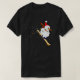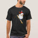 Um boneco de neve bonito em um chapéu do papai noel em esquis.