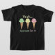 Está aqui uma camisa para toda a cara ou menina pequena que amar o sorvete. Características deste design bonitos uma ilustração de três cones do sorvete--verde da hortelã, amarelo da baunilha, e rosa da morango--moldado acima e abaixo pelo texto que me lê "yeah… grite para ele." em um amarelo do divertimento, em um verde, e em uma pia batismal do rosa. Faz um grande presente para todo o miúdo que gritar na mera menção do sorvete.