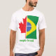 A ilustração de uma folha de bordo canadense dividida ao meio, ao lado de uma bandeira brasileira igualmente cortou ao meio