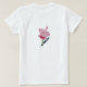 Que podia ser mais elegante do que uma única orquídea do cattleya com roteiro botânico antigo em um T branco simples? Parte dianteira e parte traseira decoradas.