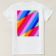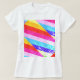 Uma camiseta branca contrabandeada com uma design RAINBOW impressa em tiras que fazem a forma do seu corpo parecer mais delgada.