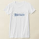 T-shirts brancas e equipadas para mulheres com inscrição (azul), "Bênçãos"