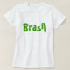 Um T da boneca em duas das cores caracterizadas na bandeira brasileira e igualmente soletradas como os brasileiros soletra-a.