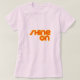 Camiseta branca com a frase 'Shine on' em laranja e amarelo, com um pequeno detalhe solar na letra 'o'. Acredite em si mesmo e viva o seu potencial de cheio. Brilha.