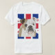 Esta Camiseta mostra meu desenho de um Bulldog Inglês contra um Union Jack. Originalmente, os Bulldog foram criados em Inglaterra para a caça à Bull, mas isso acabou por ser banido. Os Bulldog modernos, são gentis, amigáveis, leais e gentis, e fazem belos animais de estimação. Winston Churchill foi comparado a um Bulldog Britânico.