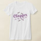Este design bonito para dançarinos da obstrução caracteriza a palavra "Clogger" no tipo cursive roxo com uma fileira de cinco figuras minúsculas da vara da dança abaixo. Igualmente tem quatro impressões dos calçados com as torneiras nelas. É uma grande maneira de mostrar fora seu amor da obstrução. Também disponível no azul.