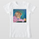 Uma criança está em perfil enquanto estuda sua boneca que também está em perfil. Ambos estão de pijama cor-de-rosa adormecido.