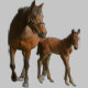 Um potro apoia-se à égua e pratica o equilibrio