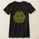 O t-shirt celta Dourado do design do "tri nó 3D" com as três inserções da cor e um rolo modelam o fundo.