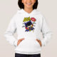 Veja Chibi Batgirl balançando de um gancho de luvas, batarang na mão.