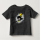 Chibi Batman faz um chute voso contra um raio de fundo.