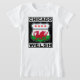 Chicago Welsh design, ao estilo de um legal sinal de estrada americano. O texto Chicago Welsh está ao longo do topo e do fundo, com a bandeira da cidade de Chicago e a bandeira do País de Gales dentro. Excelente para chicagoas de ascendência galesa e para ex-pats na cidade de Windy.