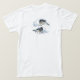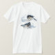 Dois Blue Jays coloridos estão coçando na neve por algo para comer. Sombras azuis formam um padrão adorável no fundo. O design está na frente e atrás desta camisa.