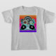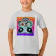 DJ Turntable com discos de álbuns de música vinílica para jóquei em disco com círculos coloridos e bolas de pop.