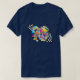 Vista o divertido design geométrico abstrato chamado Traço criado de círculos multicoloridos e triângulos de sotaque com uma faixa de tabuleiro escura e bobinável. Escolha entre o design vertical ou horizontal. Personalize sua camisa adicionando seu nome ou qualquer texto que você escolher.