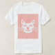 Uma camiseta confortável e na moda com um design bonito e sorridente. O gráfico tem um contorno branco da cabeça de um gato com olhos fechados, felizes, nariz em forma de coração, e sussurros, todos colocados contra um fundo rosa macio. Perfeito para amantes de gatos e para aqueles que desfrutam de designs minimalistas e alegres.