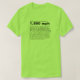 Texto na camisa: "Uma bala que viaja na vizinhança de 1.800 MPH é uma razão de peso para o controlo de armas. Nada mais em nossos arredores normais viaja perto dessa velocidade com essa muita energia destrutiva gerada por um indivíduo que emprega um único dedo. Um carro possui um potencial mais destrutivo mas não pode aproximar a velocidade de uma bala. Nada em nossos arredores normais pode. Essa unicidade é a razão para o tratamento original das armas e da posse da arma. As velocidades do projéctil do mosquete no século XVIII, quando a Declaração de Direitos foi escrita, eram uma fração de velocidades atuais do projéctil. A legislação pretendida para o mosquete é inadequada para o armamento moderno."