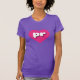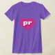 Esta t-shirt tem um coração cor-de-rosa-quente vibrante contendo letras maiúsculas em negrito, arredondadas, brancas e maiúsculas pr, uma versão lúdica da abreviação para Porto Rico, a ilha encantada.