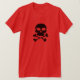 A camiseta masculina é mostrada em vermelho com uma impressão do crânio. Personalize este item ou comprar como está.