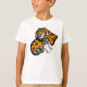 Mostrada é uma camiseta branca de pescoço de uma tripulação com mangas curtas com um impressão de tigre de baseball esportivo. Personalize esta camisa ou comprar como está.
