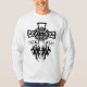 A cruz com crânios brilhantes gêmeos com presas é um design único para todos os roupa de cor clara.
