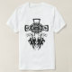 A cruz com crânios brilhantes gêmeos com presas é um design único para todos os roupa de cor clara.