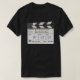 T-shirt feito sob encomenda de Clapperboard. Datilografe simplesmente seus detalhes nas caixas fornecidas e aparecerão no design clássico do clapperboard: você pode adicionar um nome, uma "produção" ou o evento, datas memoráveis, etc. O que quer que você quer! O design é autêntico e é exclusivo a esta loja.