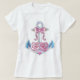 Na parte dianteira este t-shirt caracteriza uma âncora adorável decorada com rosas cor-de-rosa e um arco. Na parte traseira que lê a mensagem loving, "você seja a âncora que mantem meus pés na terra."