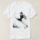 T-shirt preto e branco de uma pessoa que faz a wheely em um dirtbike.
