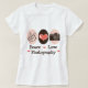 Um símbolo, um coração e uma câmera de paz no marrom cor-de-rosa e escuro com a fotografia do amor da paz das palavras debaixo dela nos t-shirt da câmera do fotógrafo, as camisetas, o roupa, a roupa e os mais artigos que fazem um presente bonito para um photog, scrapbooker ávido ou o qualquer um que ama agarrar imagens. Clique sobre a seguinte relação para ver todo nosso Chrissy H.