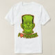 Este t-shirt do Dia das Bruxas paga playfully a homenagem ao monstro de Frankenstein com uma ilustração verde e alaranjada da criatura do filme e do texto: Eu amo (coração) Frankie.