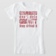 O t-shirt diz que os "Gymnasts não provocam a gravidade que a derrotam" com uma silhueta do gymnast.