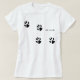 T-shirt branco com impressões da pata e do "texto da mulher gato"