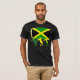 Jogo de três jogadores de futebol na frente da bandeira jamaicana. O nome de país Jamaica está no lado