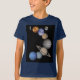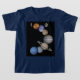 T-shirt escuro dos miúdos com um montagem dos planetas de nosso sistema solar das imagens da NASA.