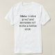 O t-shirt com a indicação "faz-lhe a prova do idiota e alguém fará um idiota melhor."