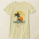 T-shirt da silhueta da palmeira de Miami Beach do vintage com sol alaranjado, água reflexiva azul e uma cadeira de praia de dobramento tranquilo. Perfeito!